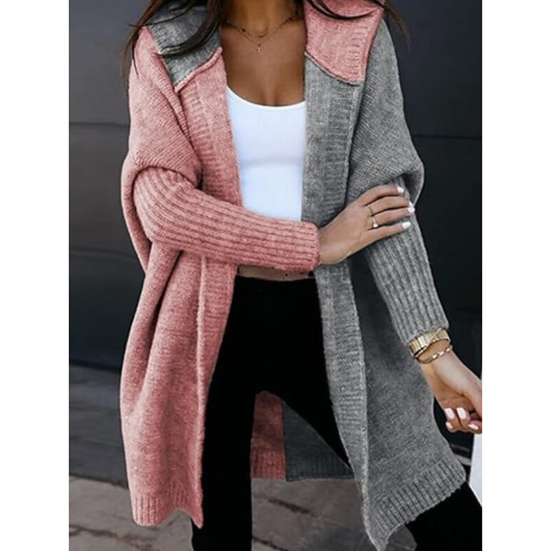 Women's Sweater Cardigan Casual Soft Pure Color Ribbed Hooded Knitted Long Sleeve Long Tops Knit Outdoor Daily Weekend Pink Green Fall Winter