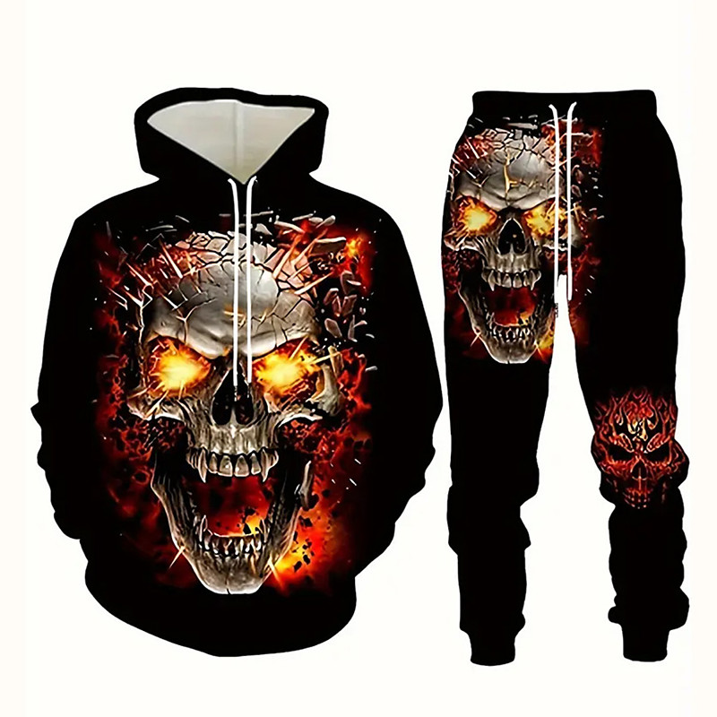 Men's Skulls 2pcs 3D Sweatshirt Sets Tracksuit Hoodie Sweatshirt Long Sleeve Long pants Hooded Casual Daily Athleisure 3D Print Spring Fall Winter Black