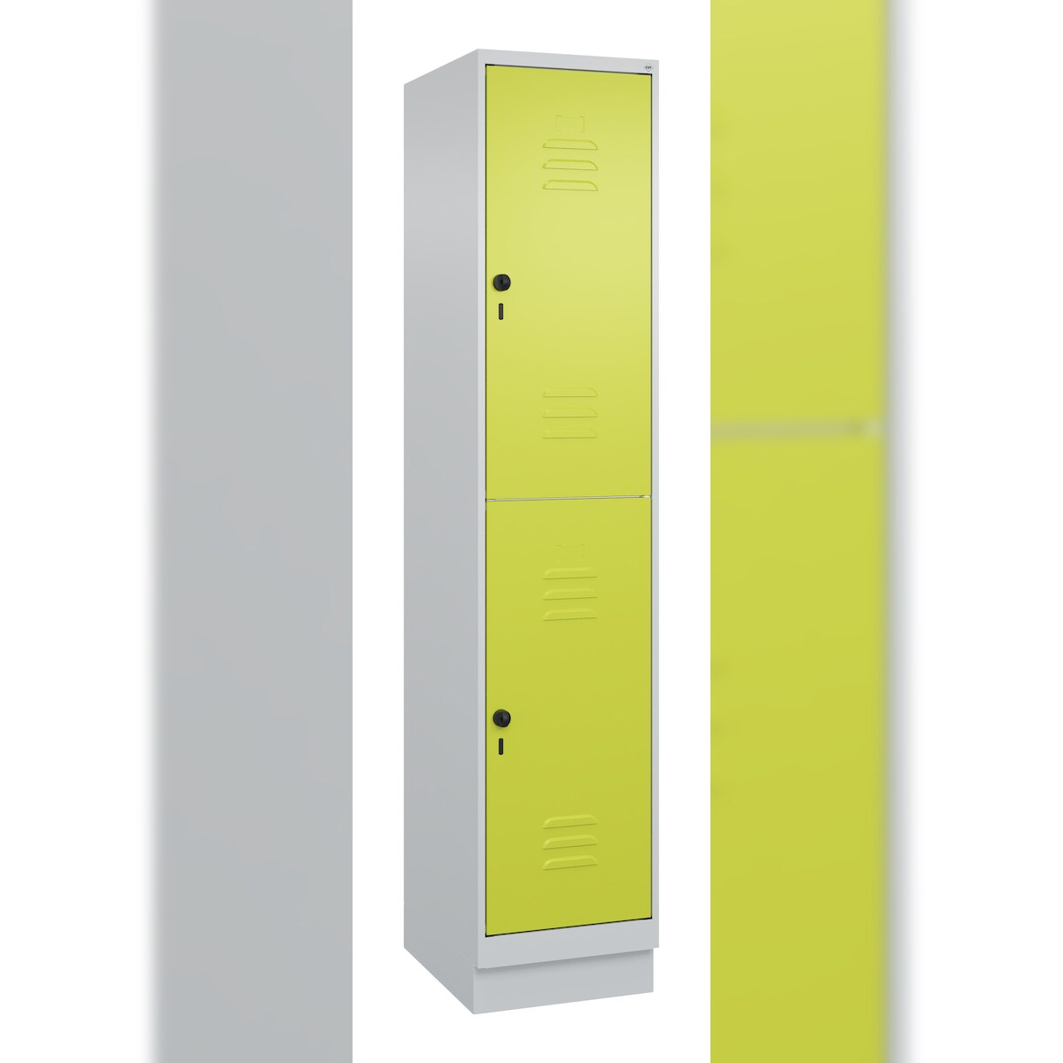 C+P Spind Classic PLUS, Sockel, 2 Abteile, HxBxT 195x40x50cm, Sicherheitsdrehriegel, Hellgrau/Clowngrün von PROREGAL