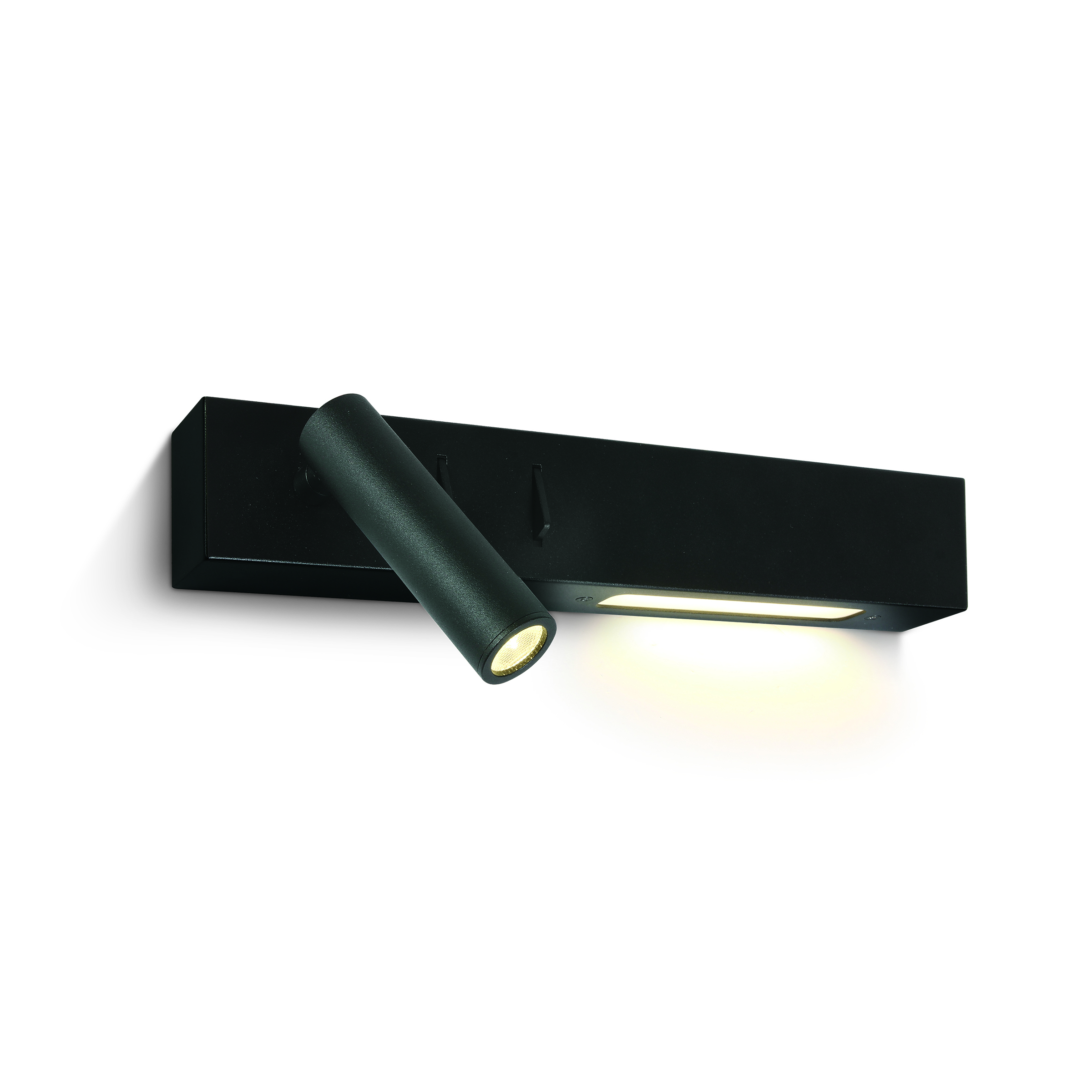 ONE Light Reading Spot - wandspot met schakelaar - 30 x 3,5 x 5 cm - 3W + 6W LED incl. - zwart
