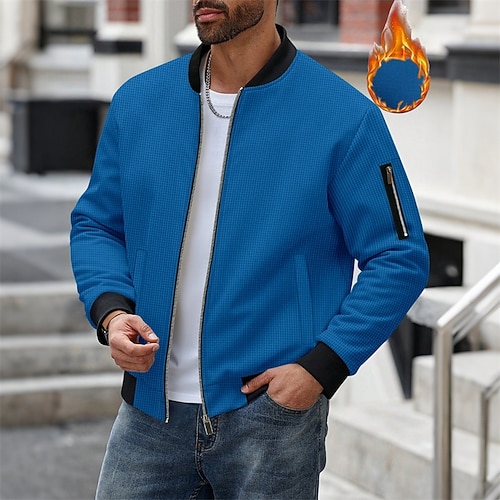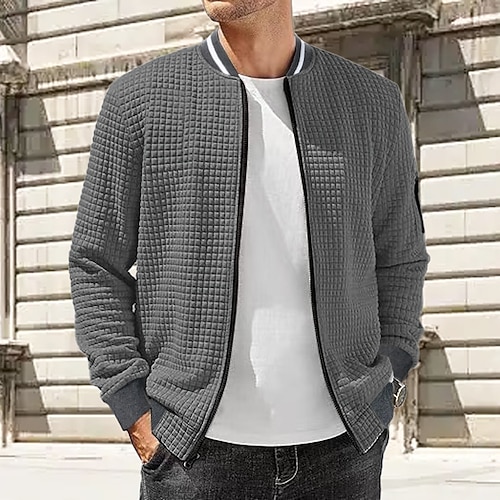 Per uomo Giacca a nido d'ape Giacca di transizione Quotidiano Leggero Tasca Primavera Autunno Semplice Classico Bavero Regolare Nero Bianco Blu reale Cachi Grigio chiaro Giacca