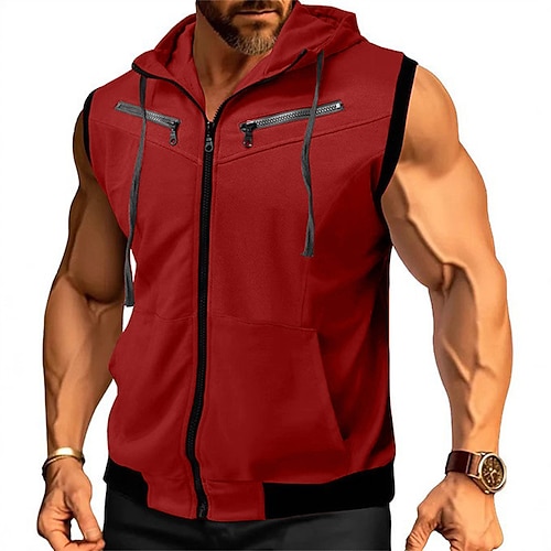 Per uomo Felpa con cappuccio Felpa con cappuccio a zip intera Nero Vino Rosso Blu marino Viola Con Cappuccio Blocco di colori Coulisse Tasca Sport Outdoor Quotidiano Ferie Poliestere Streetwear