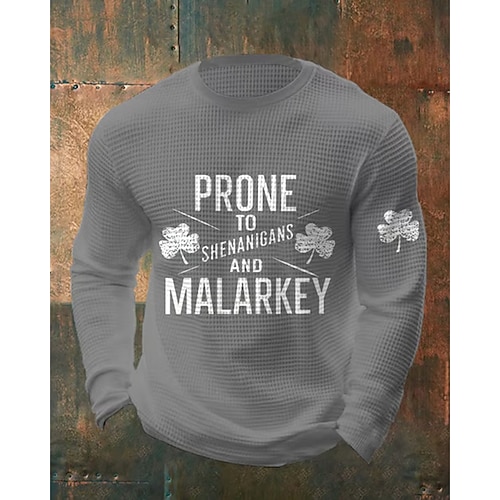 Giorno di San Patrizio San Patrizio Festa di San Patrizio Per uomo Trifoglio Camicia a nido d'ape Maglietta Manica Lunga maglietta Girocollo Camicia Sport Moda Classico Quotidiano Vacanza Feste Nero