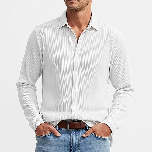 Per uomo Camicia Tessuto Camicia casual Camicia di Velluto a Coste Camicia con Bottoni Nero Bianco Borgogna Blu marino Verde Manica Lunga Semplice Colletto a Camicia Casuale Quotidiano Tasca Frontale