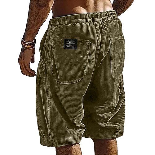 Per uomo Shorts Pantaloncini casual Pantaloncini di velluto a coste Tasca Elastico in vita Semplice Traspirante Lunghezza al ginocchio All'aperto Vacanza Abbigliamento quotidiano Vacanza Moda Nero
