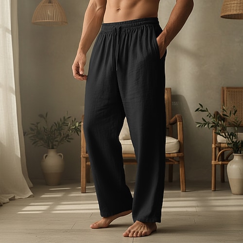 Per uomo Pantaloni di Lino Pantaloni Pantaloni Estivi Coulisse Elastico in vita Semplice Comodità Traspirante Casuale Quotidiano Ferie Moda Stile Classico Nero Bianco