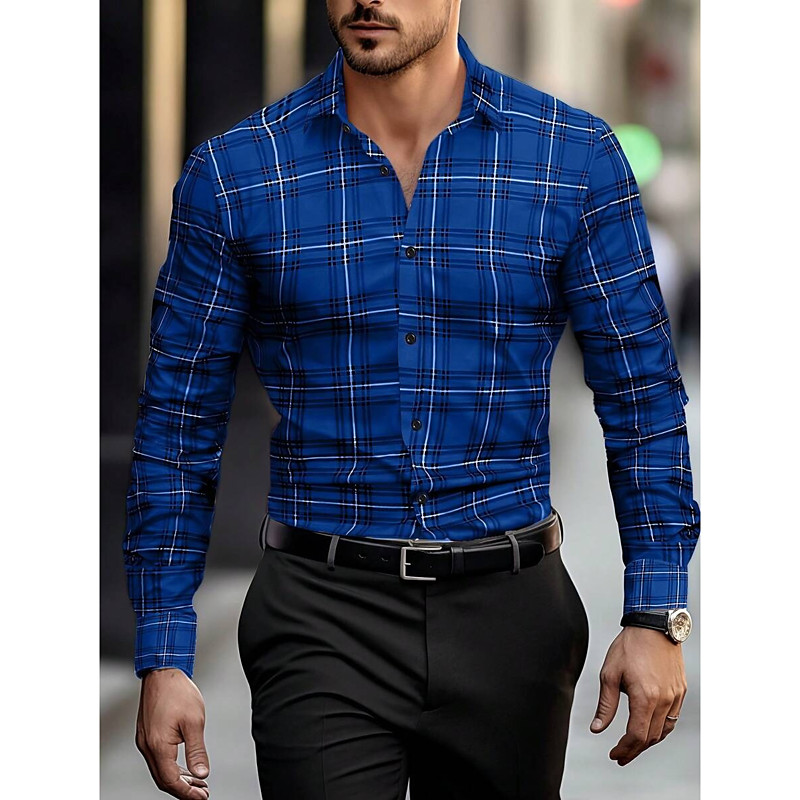 Per uomo Plaid Maglia da golf Manica Lunga Magliette polo Camicie con Colletto Vintage Casual Abbigliamento da vacanza Abbigliamento Formale Abbigliamento da festa Bottoni Stampa 3D Primavera Autunno