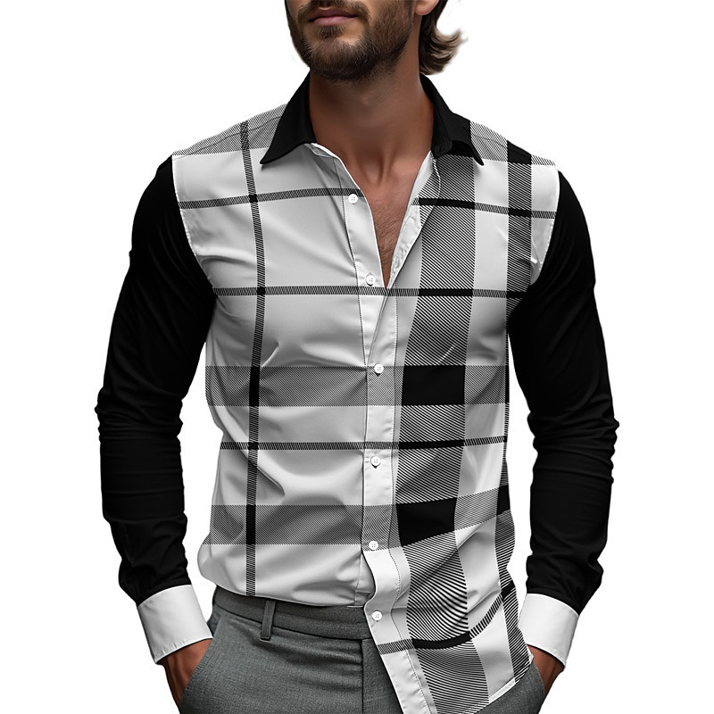 Men's Shirt Summer Shirt Casual Shirt Beach Shirt Button Up Shirt Black White Long Sleeve Plaid Lapel Vacation Hawaiian Button-Down Clothing Apparel Polyester Fashion Casual Comfortable