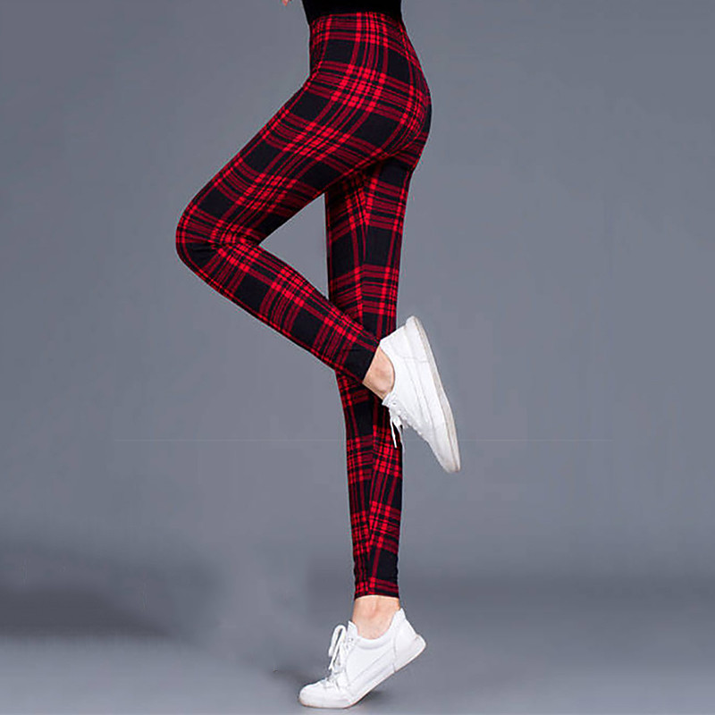 Women's Tights Leggings Cozy Leggings Streetwear Casual Full Length High Waist Plaid Elastic Waist Breathability Stretchy Vacation Street Daily Wear Magenta Dark red Wine Black Fall Regular Fit