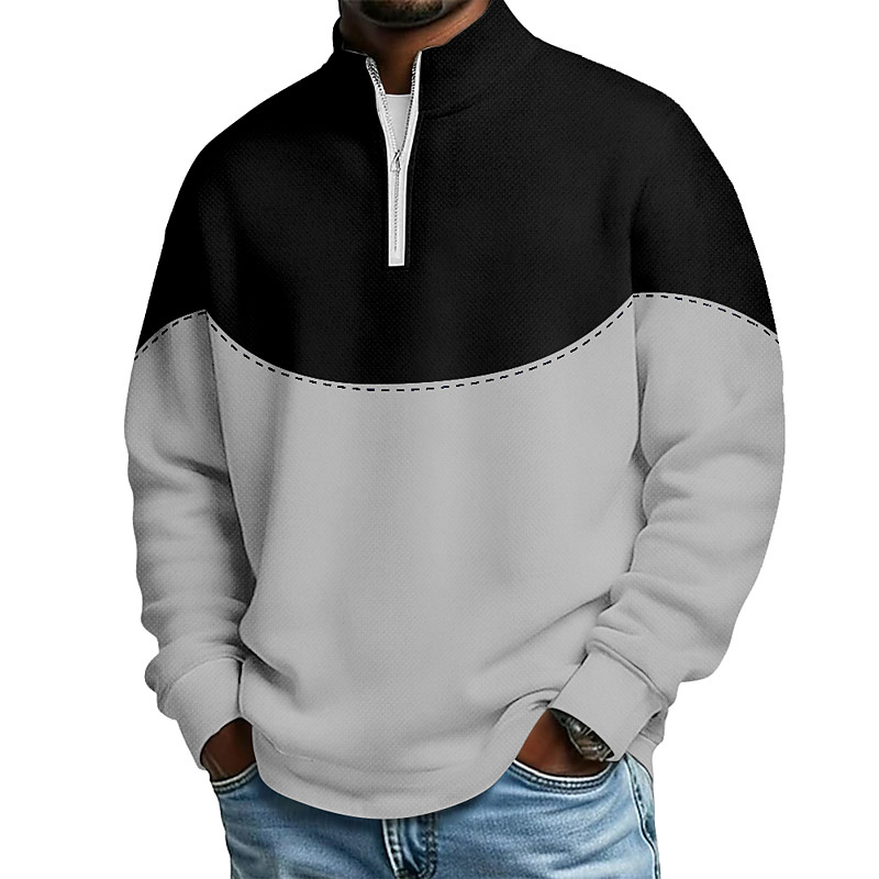 Men's Color Block Zip Polo Shirts Long Sleeve Polo Shirts Grandad Collar Casual School Athleisure Holiday Daily Wear 3D Print Quarter Zip Polo Spring Fall Winter Blue Black Navy Blue