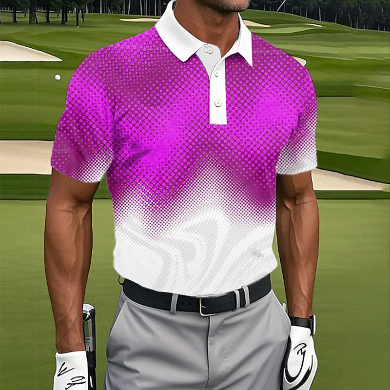 Men's Color Block Golf Sports Polo Shirts Short Sleeve Polo Shirts Lapel Casual Athleisure 3D Print Buttons Summer Blue Purple