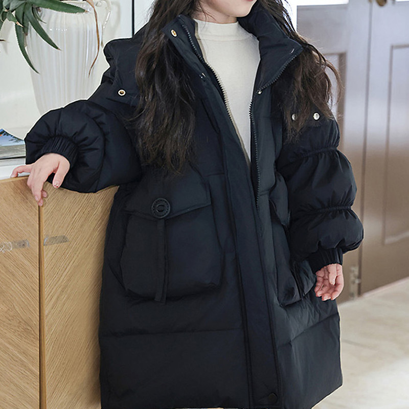 Kids Girls' Down Jacket Puffer Jacket Solid Color Sports Pocket Keep Warm Windproof Outdoor Coat Outerwear 5-12 Years Winter Black Pink Red