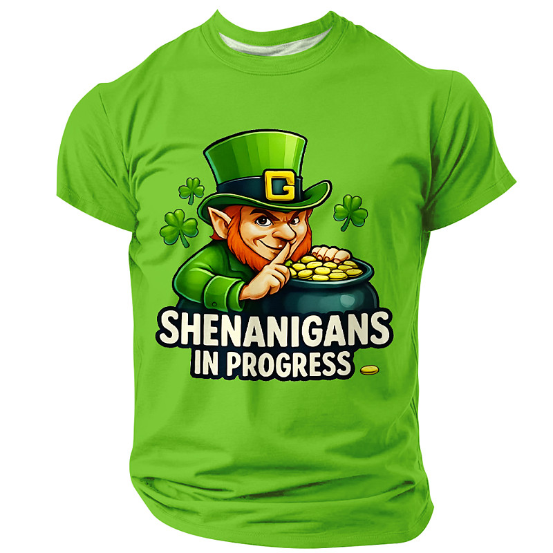 St Patricks Day Shenanigans In Progress T Shirt Funny Leprechaun Pot Of Gold Graphic Tee Men Irish Lucky Shamrock Green Holiday Party Top Clothing Apparel S M L XL XXL XXXL