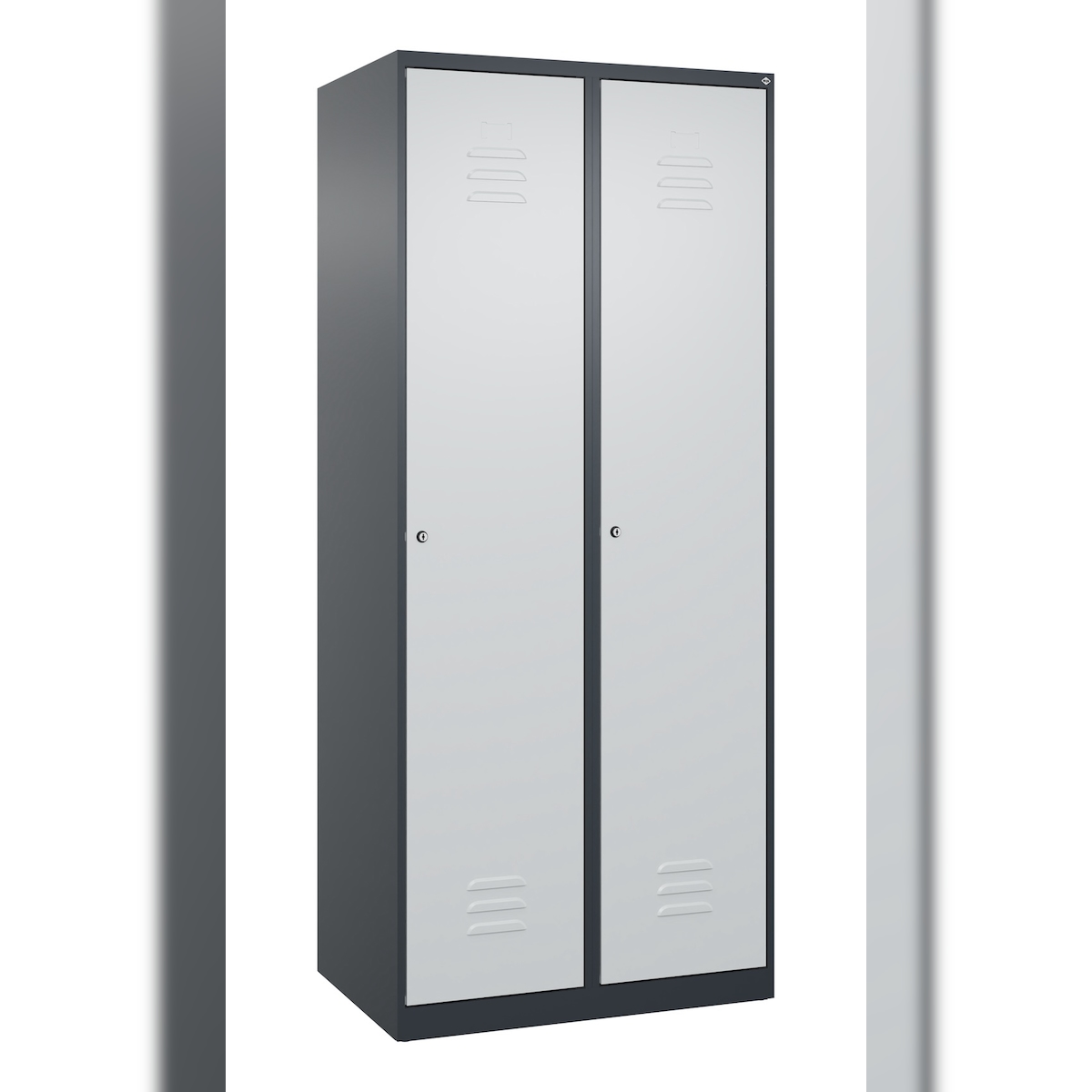 C+P Spind Classic PLUS, Sockel, 2 Abteile, HxBxT 195x60x50cm, Zylinderschloss, Hellgrau/Anthrazit von PROREGAL