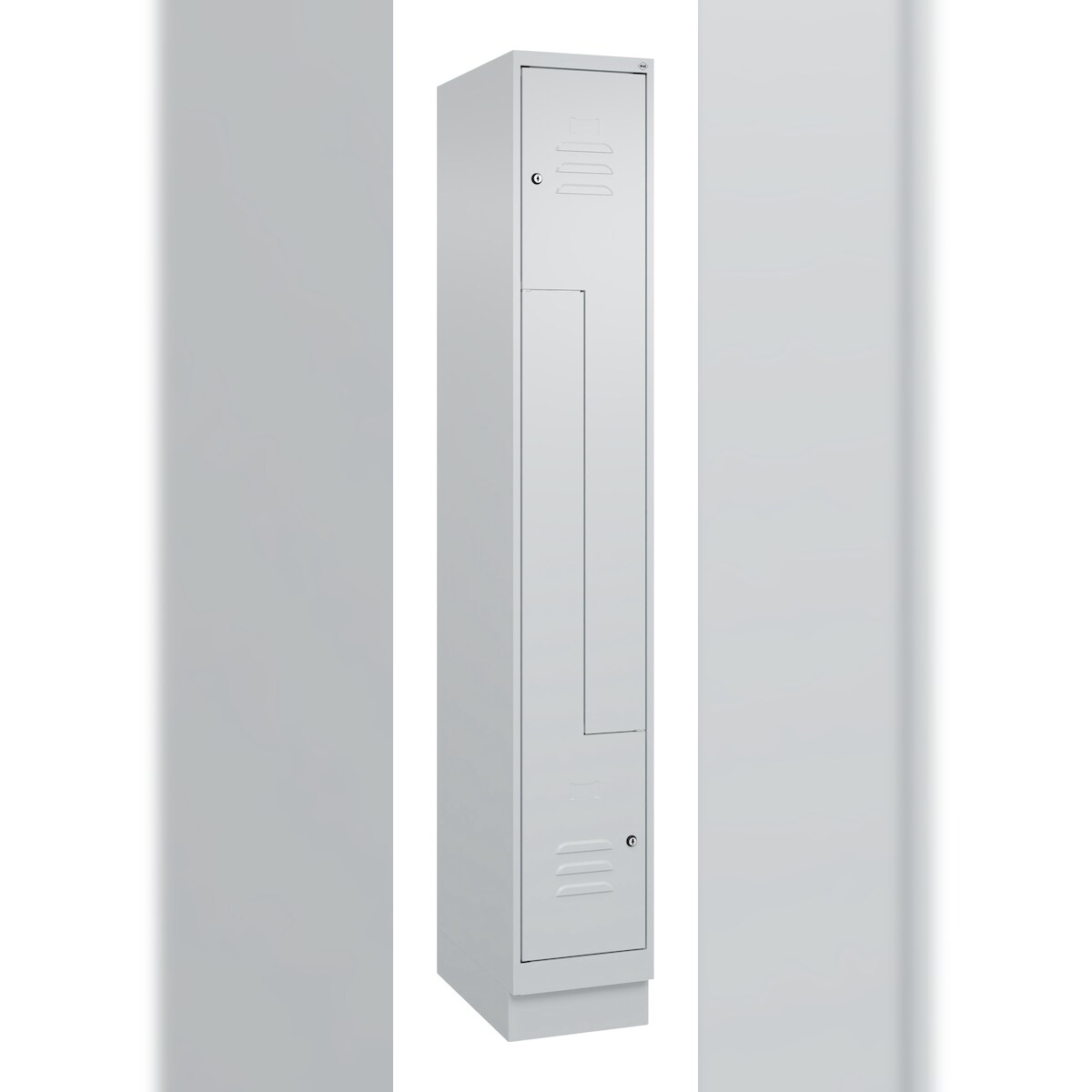 C+P Z-Spind Classic PLUS, Sockel, 2 Abteile, HxBxT 195x30x50cm, Zylinderschloss, Hellgrau/Hellgrau von PROREGAL