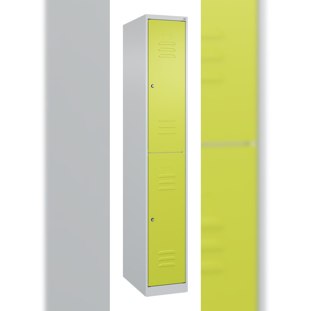 C+P Spind Classic PLUS, 2 Abteile, HxBxT 185x30x50cm, Zylinderschloss, Hellgrau/Clowngrün von PROREGAL