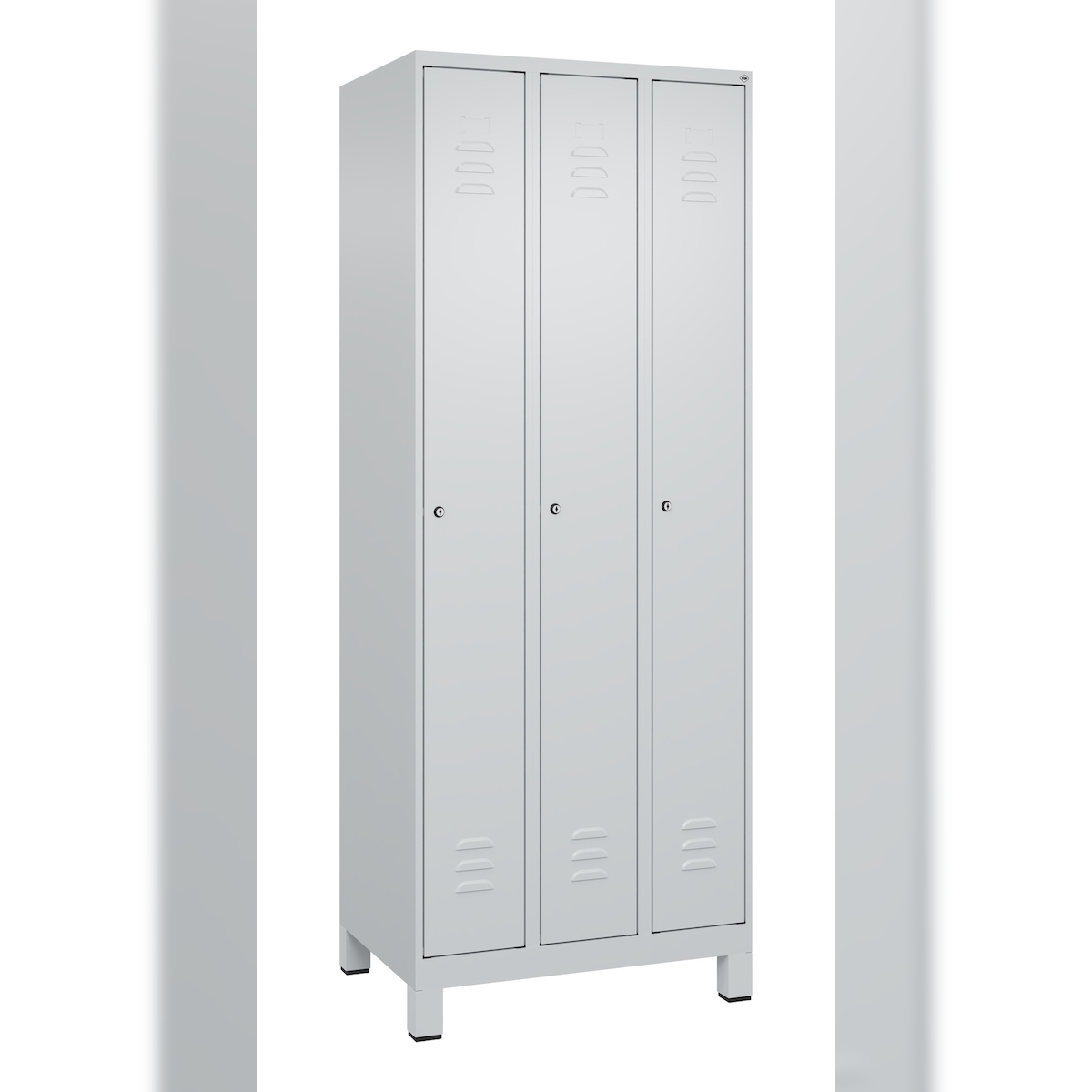 C+P Spind Classic PLUS, Füßen, 3 Abteile, HxBxT 195x75x50cm, Zylinderschloss, Hellgrau/Hellgrau von PROREGAL