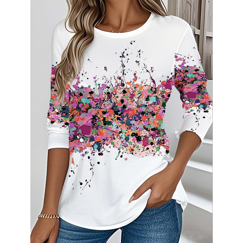Women's T Shirt Graphic Fashion Classic Casual Long Sleeve Round Neck Regular Tops Daily Weekend Vacation Wear Print Purple Summer Spring Fall