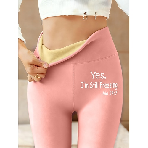 Per donna leggings foderati in pile Leggings Vacanza Vintage Stile Etnico Lunghezza intera Vita Alta Lettera Calore Termico Comodo Confortevole Elasticizzato All'aperto Casual Casuale Nero Rosa Blu