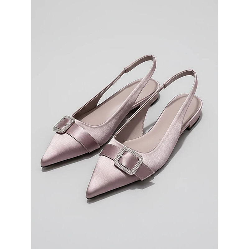 Elegant Women's Slingback Flats for Bridesmaid– Pointed Toe Satin Shoes with Rhinestone Buckle, Comfortable Low Heel Bridal Formal Occasion Footwear
