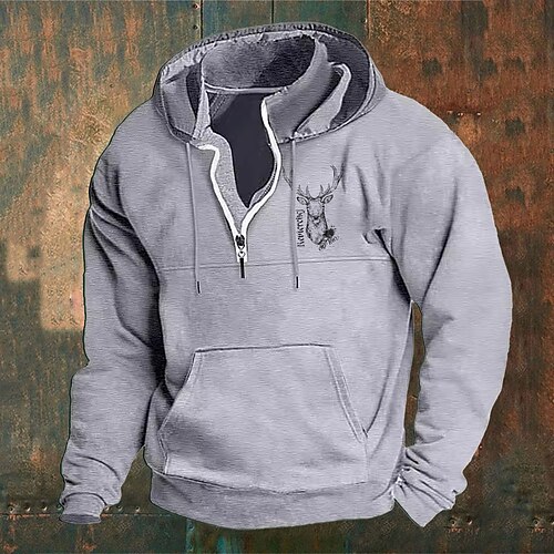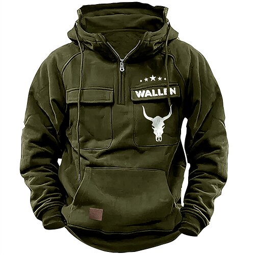 Per uomo Felpa con cappuccio Vino Blu marino Verde Cachi Grigio chiaro Con Cappuccio Ogni Tasca Frontale Zip a un quarto Quotidiano Ferie Uscire Poliestere Streetwear Casual Bavarese Autunno Inverno