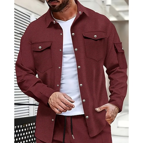Per uomo Camicia Tessuto Camicia casual Camicia con Bottoni Nero Bianco Vino Blu marino Azzurro cielo Manica Lunga Semplice Bavero Casuale Quotidiano Abbigliamento Elegante Moda Casual