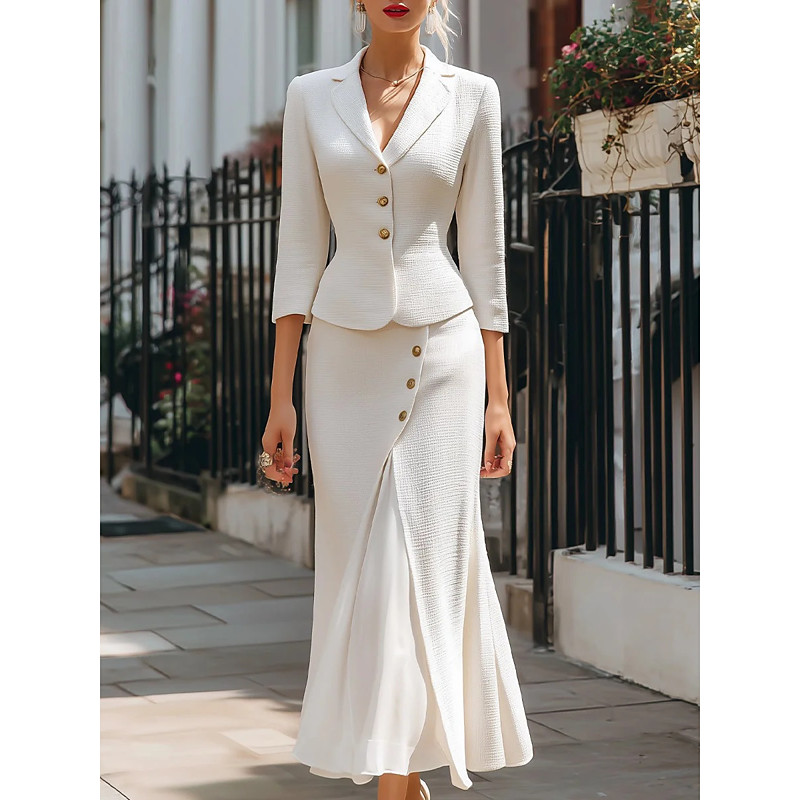 Women's Elegant Fashion Streetwear Skirt Sets Bolero Top Long Sleeve Shirt Collar Solid Color Formal Office Work Black White Spring Regular Fit