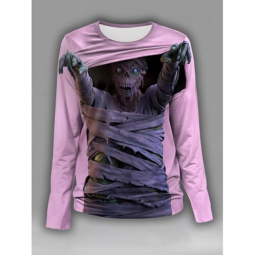 Damen T-Shirt Grafik Skull Vintage Mode Stylisch Lange Ärmel Rundhalsausschnitt Rundhalsausschnitt Reg normale Tops Täglicher Wochenenddruck Gelb Blau Lila Grün Sommer Frühling Herbst