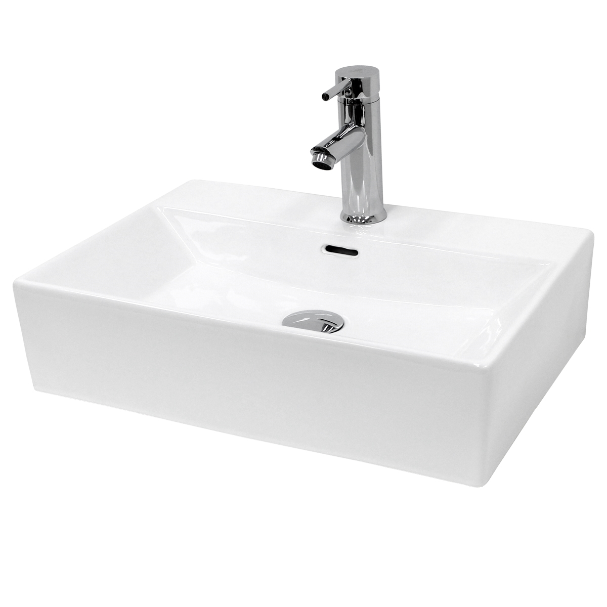 LuxeBath ECD Germany Aufsatzwaschbecken Keramik Weiß 515×360×130 mm, mit Überlauf, inkl. Ablaufgarnitur – modernes Design Waschbecken