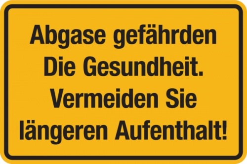 Hinweisschild, Abgase gefährden die Gesundheit - 300 x 200 x 1.5 mm Kunststoff