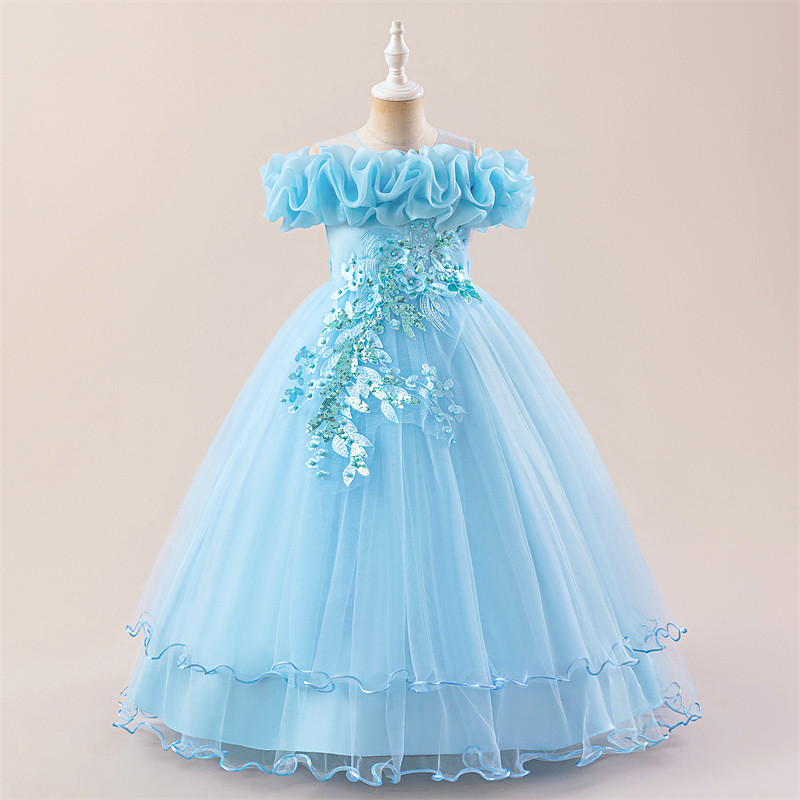 Kids Girls' Dress Flower Sleeveless Performance Party Lace Cute Polyester Knee-length Tulle Dress Summer Spring Fall 4-13 Years Blue
