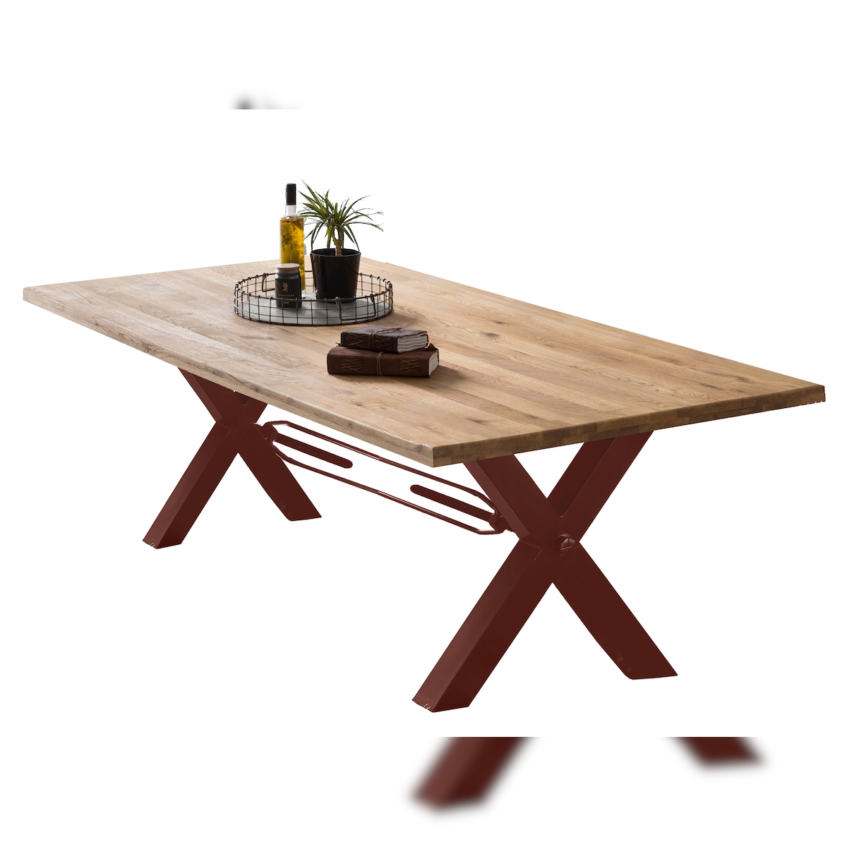 SIT Möbel Esstisch 240 x 100 x 76 cm | Tischplatte 40 mm | Wildeiche natur | X-Gestell Metall antikbraun | 15883-00 | Serie TABLES & CO