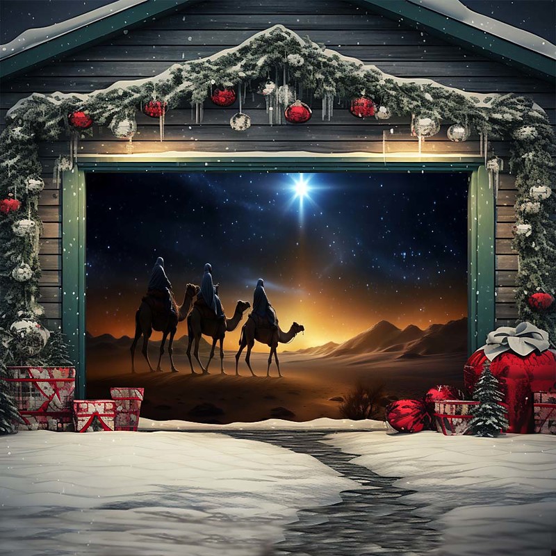 Christmas Outdoor Garage Door Cover Xmas Banner Nativity Scene Large Christmas Backdrop Decoration for Holiday Outdoor Garage Door Home Wall Decorations