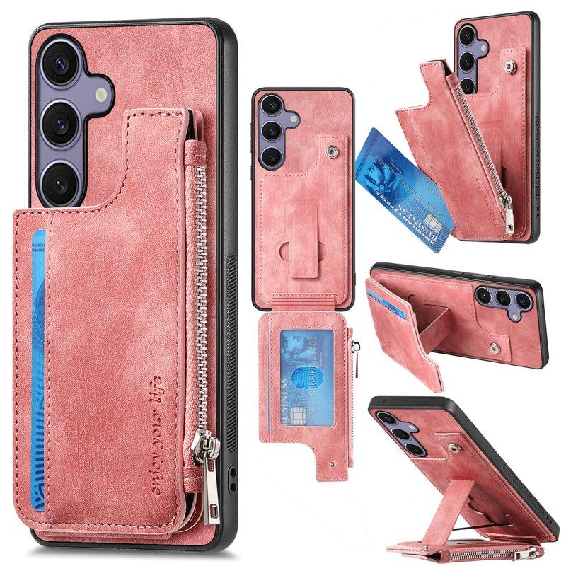 Zipper Mobilskal till Samsung Galaxy A55 5G Äkta Läder + Plast - Rosa