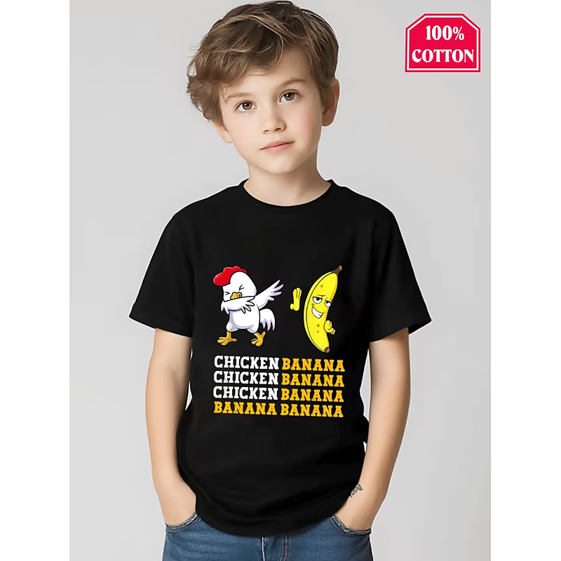Cotton Kids Boys' Black White Red Chicken and Banana Graphic T shirt Blouse Crew Neck Short Sleeve Outdoor Dailywear Fashion Streetwear Designer Printing Summer