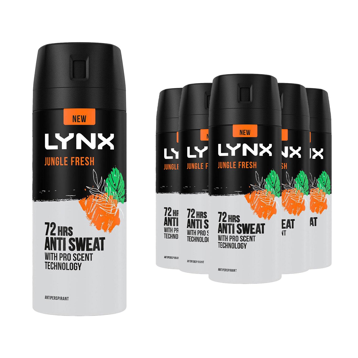 Lynx Mens Jungle Fresh 72 Hrs Anti Sweat Anti-perspirant Body Spray for Men, 24x150ml - Size 150 ml | Lynx Sale | Discount Designer Brands