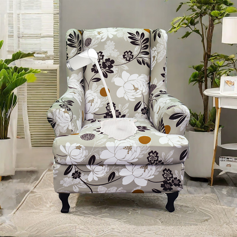 Wing Chair Slipcover Spandex Fabric Sofa Covers Wingback Armchair with a Seat Cushion Cover FloralPattern Furniture Protector for Living Room