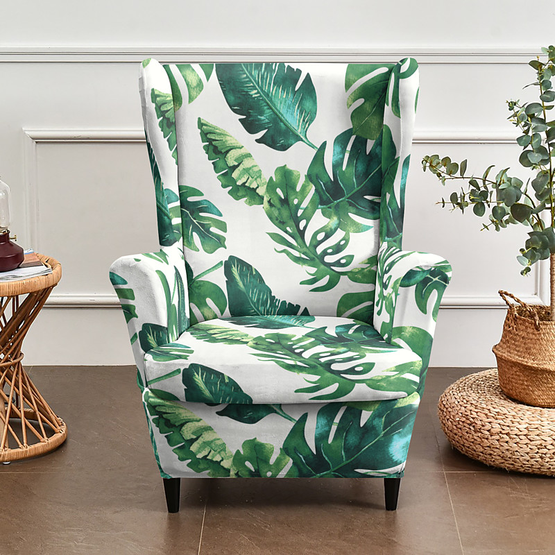 Printed Wingback Chair Slipcovers, Floral / Striped / Geometric Stretch Polyester Armchair Covers, Decorative Furniture Protectors