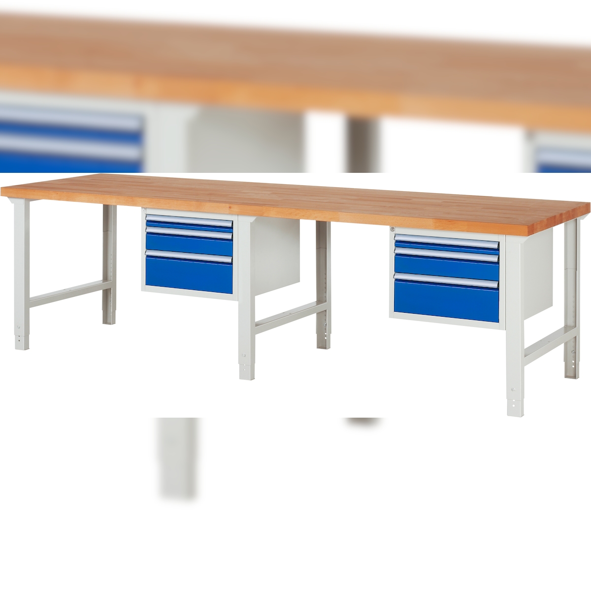 PROREGAL Werkbank Serie 7000 - Modell 7126 | HxBxT 79-114x300x90cm | 6x Schublade | Schubladenmaße 2x60 + 2x120 + 2x180mm