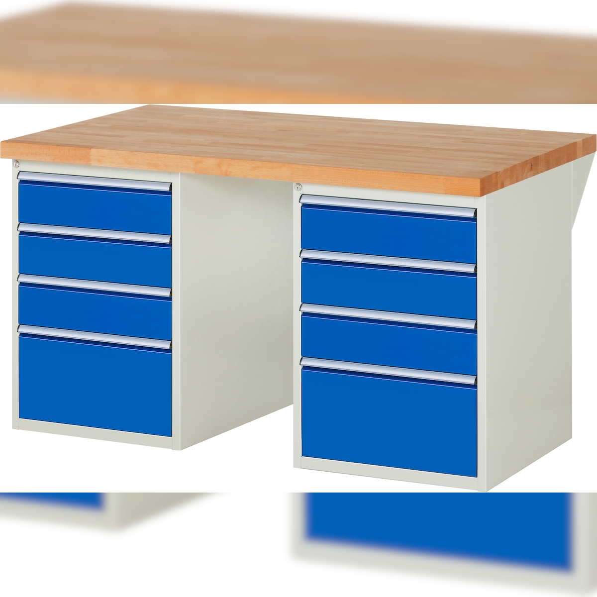 PROREGAL Werkbank Serie 7000 - Modell 7508 | HxBxT 84x125x90cm | 3x Schublade | Schubladenmaße 1x150 + 1x210 + 1x360mm
