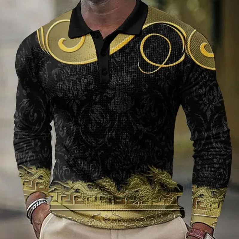 Men's Color Block Geometic Waffle Polo Shirts Long Sleeve Polo Shirts Collared Shirts Business Casual Business Wear to work Daily Wear Buttons Spring Fall Winter Black 1 Black 2 Black