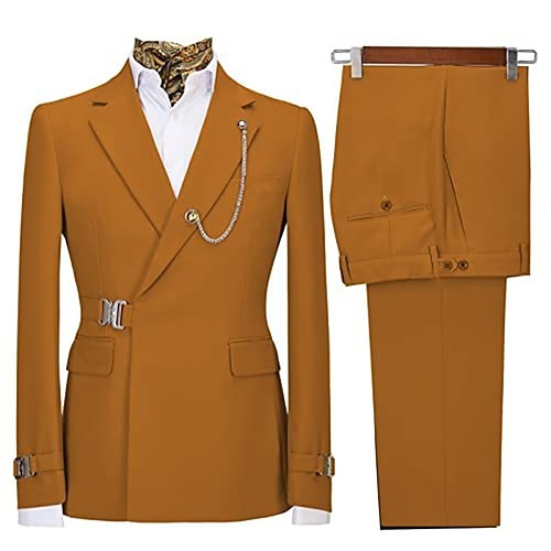 Herren Blazer Set Geschäft Cocktailparty Hochzeitsfeier 2 Stück Mode Lässig Frühling Herbst Polyester Einfarbig Tasche Knöpfe Bequem Einreihig Blazer Dunkelgelb Schwarz Weiß Gelb