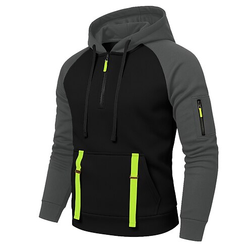 Per uomo Felpa con cappuccio Felpa con cappuccio e zip corta Felpa con cappuccio in pile Felpa con cappuccio tattica Nero Cachi Grigio scuro Con Cappuccio Semplice Patchwork Cerniera Blocco di colore