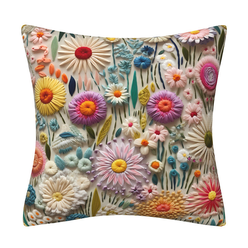 Floral Pillow Cover 2D Flat Print Decorative Cushion Case with Faux embroidery Soft Polyester Fabric for Sofa Bedroom Living Room Home Decor