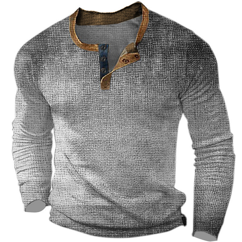 Men's Graphic Gradient Waffle Henley Shirt Casual Style Classic Style Long Sleeve 3D Print Fashion Designer Basic Outdoor Daily Spring Fall Blue Orange Brown Gray Henley Henley T-Shirt