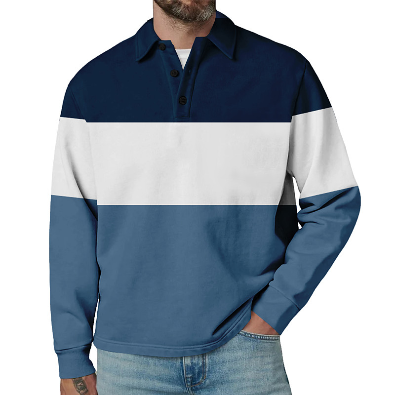 Men's Color Block Rugby Polo Shirts Long Sleeve Polo Shirts Ribbed Polo Collar Fashion 3D Print Comfortable Formal Work Casual Buttons Fall Winter Wine Yellow Gray