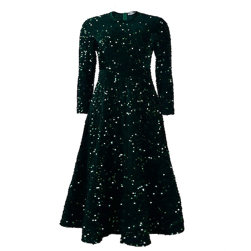 Women's Midi Dress Black Dress Sequin Dress Elegant Fashion Classic Daily Outdoor Going out Regular Fit Plain Long Sleeve Crew Neck Black Champagne Red Royal Blue Spring Fall