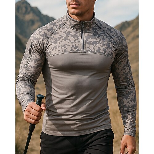 Per uomo Felpa con mezza zip Felpa militare Manica Lunga Collo alla coreana Top Esterno Traspirante Misto Cotone Mimetico Grigio scuro pitone nero Nero Viaggio Corsa