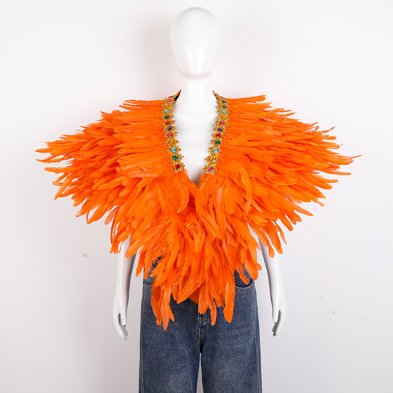 Carnival 2026Rio Carnival Samba Accessories Women's White Feather Cape Shawl with High Collar Brazil Festival Performance Costume
