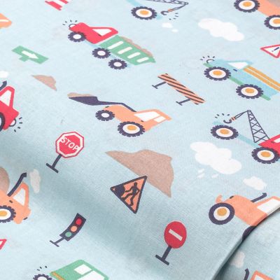 Tissu coton "véhicules", bleu/coloré